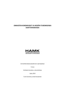 Tämän opinnäytetyön tarkoitus ja tavoite oli tutkia omaisten ja läheisten saamaa tukea saattohoitoprosessin aikana erään eteläsuomalaisen hyvinvointikuntayhtymän alueella. Tarkoituksena oli kerätä omaisten kokemuksia ja selvittää saivatko omaiset ja läheiset riittävästi tietoa ja tukea saattohoitoprosessin aikana hoitohenkilökunnalta. Opinnäytetyön tavoitteena oli saavuttaa uusia tutkimustuloksia siitä, kuinka omaiset ovat kokeneet saattohoidon toteutumisen alueella. Tutkimukseen osallistui 4 (=4) henkilöä, jotka ovat käyneet läpi saattohoitoprosessin omaisen näkökulmasta viimeisen viiden vuoden kuluessa. Haastateltavat ilmaisivat itse halukkuutensa osallistua tutkimukseen. Tässä opinnäytetyössä tutkimusmenetelmänä käytettiin laadullista tutkimusta. Aineistoa kerättiin teemahaastatteluilla ja saatua aineistoa analysoitiin induktiivisella sisällönanalyysillä. Tutkimustulosten mukaan kaikilla haastateltavilla oli saattohoitoprosessista kokonaisvaltaisesti positiivinen kokemus. Omaiset kokivat, että saattohoitoympäristöt olivat kiireettömiä ja hoitajilla oli riittävästi aikaa keskustella heidän kanssaan. Omaiset kokivat myös merkittävänä asiana, että he saivat halutessaan osallistua kuolevan läheisensä hoitoon. Haastateltavat kertoivat, että prosessin aikana eniten ahdistusta toi, kun joutui katsomaan vierestä oman läheisensä voimien hiipumista eikä ollut tarkkaa tietoa kauanko prosessi tulisi kestämään. Tästä tutkimuksesta saatuja tuloksia voidaan hyödyntää yksiköissä, joissa toteutetaan saattohoitoa.
