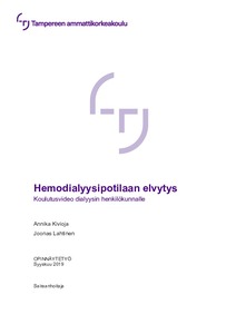 Opinnäytetyön tarkoituksena oli tuottaa koulutusvideo hemodialyysipotilaan elvytyksestä hoitohenkilökunnan käyttöön. Opinnäytetyön tehtävinä oli selvittää mitä erityispiirteitä on hemodialyysipotilaan elvytyksessä, miten toimitaan, jos potilas menee elottomaksi kesken hemodialyysihoidon sekä millainen on hyvä koulutusvideo. Työn tavoitteena oli lisätä hoitohenkilökunnan elvytysosaamista sekä henkilökunnan toimintavalmiutta hemodialyysipotilaan elottomuuden hoidossa. Työ oli menetelmältään toiminnallinen ja sen tilaajana on toiminut Hämeenkyrön terveyskeskuksen dialyysiyksikkö, joka toimii paikallisen yliopistosairaalan satelliittiyksikkönä. Teoriatieto koulutusvideon taustalle on kerätty alan artikkeleista ja kirjallisuudesta sekä opinnäytetyössä tehdyistä asiantuntijahaastatteluista. Työn aihe oli lähtöisin työelämän tarpeesta, ja videota tullaan käyttämään henkilökunnan täydennyskoulutuksessa, sekä uusien työntekijöiden perehdyttämisessä Hämeenkyrön dialyysissä.