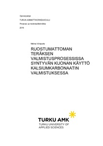 Loppupäätelmänä opinnäytetyölle voidaan pitää sitä, että kuonasta on mahdollista valmistaa sekä sokeriuuton että muurahaishappouuton jälkeen kalsiumkarbonaattia. Parhaat uutto-olosuhteet selvittämällä voidaan vaikuttaa kalsiumkarbonaatin puhtauteen. This thesis was commissioned by CrisolteQ Oy and Tapojärvi Oy. CrisolteQ specializes in exploring the side streams of the chemical industry and metal industry and recovering metals from the side streams. Tapojärvi Oy specializes in mining, material handling and management of factory and industrial process. Bachelor’s Thesis were conducted at CrisolteQ's laboratory facilities in Smart Chemistry Park, Turku.