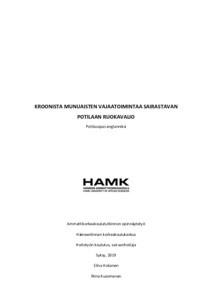 The functional portion of the thesis was carried out in the form of a patient guide and handled the diet in English. When designing the guide, the commissioners wishes were taken into consideration. The Finnish language was used to compile the theoretical reference framework so that the thesis would serve as many as possible and be more readily discoverable. The Finnish-language thesis theory also benefits patient guidance. The patient guide made in English serves others better than Finnish speaking patients, this way they can also feel safe and equal.