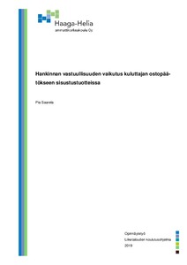 Tässä opinnäytetyössä tutkitaan yritysten hankinnan vastuullisuuden vaikutusta kuluttajien ostopäätökseen sisustustuotteissa. Opinnäytetyön tutkimusongelma ratkaistiin yhden pääongelman ja kahden alaongelman avulla, mitkä muotoiltiin kysymysten muotoon. Kysymysten avulla tutkitaan miten yritysten vastuullinen hankinta vaikuttaa kuluttajan ostopäätökseen, miten yrityksen tulisi viestiä vastuullisista hankintaperiaatteistaan ja mitkä vastuullista hankintaa edustavat sertifikaatit ja standardit ovat kuluttajien mielestä tärkeimpiä.