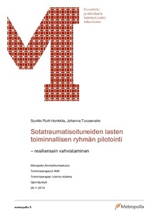 Opinnäytetyön tavoitteena oli suunnitella, toteuttaa ja kuvata sotatraumatisoituneiden lasten resilienssiä vahvistavan toiminnallisen ryhmän pilotointi jatkokehittelyä varten. Yhteistyökumppani Diakonissalaitoksen Psykotraumatologian keskuksen Lasten ja nuorten toiminta on psykiatrinen poliklinikka, jonka asiakkaina on vaikeasti sotatraumatisoituneita lapsia ja nuoria sekä heidän perheitään. Ryhmämuotoisen kuntoutuksen keskeisiksi tavoitteiksi nähtiin vahvistaa pakolaistaustaisen lapsen luottamusta omiin taitoihinsa, kykyynsä tehdä valintoja ja vaikutusmahdollisuuksiinsa. Ryhmä voi myös edistää lasten kotoutumista ja harrastusmahdollisuuksia.