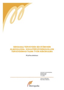 Opinnäytetyömme tarkoituksena oli kuvata kirjallisuuskatsauksen avulla seksuaaliterveyden edistämistä alakoulussa terveydenhoitajan näkökulmasta. Tavoitteenamme oli selvittää mahdolliset kehittämistarpeet seksuaaliterveyden edistämisen osaamisessa kouluterveydenhoitajan työssä ja tuoda esiin kirjallisuuden esittämiä toimenpiteitä näihin kehittämistarpeisiin vastaamiseksi. Tekemämme opinnäytetyön myötä, on tavoitteenamme olla osaltaan vaikuttamassa seksuaaliterveyden edistämiseen osaamisen alakoulun kouluterveydenhuollossa. Opinnäytetyömme on osa Metropolia Ammattikorkeakoulussa toteutettavaa hanketta, joka liittyy Seksuaali- ja lisääntymisterveyden edistämisen osaamiseen ja kehittämiseen metropolialueella ja hoitotyön koulutuksessa.