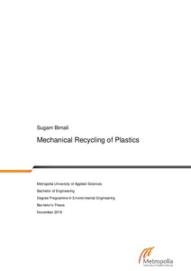 Existing mechanical mechanism of plastics recycling along with the emerging methods are described. But more innovation is needed on mechanical separation of polymers as there are still some proportion of plastic waste ending in the landfill. From the statistics view, Finland is doing quite well within the European Union territory when it comes to plastics recycling, energy generating via incineration and landfills. An average EU statistic data shows more is needed to be done especially when plastic production outperforms plastic recycling by more than tenfold.