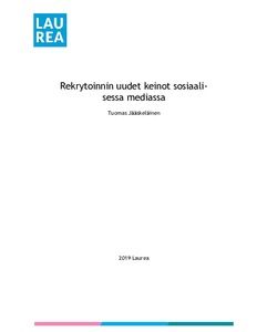 Opinnäytetyön aiheena oli rekrytoinnin uudet keinot sosiaalisessa mediassa. Työlle oli kaksi tavoitetta, joista ensimmäinen oli löytää toimeksiantajayritykselle uusia keinoja rekrytointiin sosiaalisessa mediassa. Toinen tavoite oli selvittää, millaisia rekrytointi-ilmoitusten tulisi olla sosiaalisessa mediassa. Työssä pohdittiin myös, miten sosiaalisen median merkitys rekrytoinnissa tulee tulevaisuudessa muuttumaan. Toimeksiantajayrityksestä puhutaan opinnäytetyössä yrityksenä X tai toimeksiantajayrityksenä, jolle työn aihe on ajankohtainen. Nimeä ei tuotu esille yrityksen toiveesta. Kyseisellä yrityksellä on ympäri vuoden paljon rekrytointeja. Sosiaalisen median merkitys rekrytoinneissa on myös kasvanut vuosien aikana entistä enemmän, mikä tekee tästä työstä ajankohtaisen muillekin yrityksille.