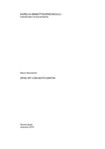Esimiehellä on vähän työkaluja myyjien motivointiin. Tämän opinnäytetyön aiheena oli tavoitteellista myyntityötä tekevän myyjän motivointi esimiehen toimesta. Opinnäytetyö on kirjoitettu myyjän näkökulmasta. Opinnäytetyön tavoitteena oli saada esimiehelle työväline myyjän motivointiin ja myynnin edistäminen motivoinnin kautta. Valmiista opinnäytetyöstä esimies saa tietoa, jolla hän pystyy kouluttamaan myyjistään parempia ja motivoituneempia myyjiä.