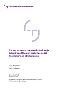 Opinnäytetyön tarkoituksena oli selvittää, miten yläkoulun kouluyhteisössä voidaan henkilökunnan toimesta tukea ja edistää nuorten mielenterveyttä. Opinnäytetyön tavoitteena oli tuottaa tietoa siitä, mitkä ovat yläkoulun henkilö-kunnan näkemykset oppilaiden mielenterveyden edistämiseksi koulussa. Lisäksi tarkoituksena oli kehittää uusia toimintamalleja/keinoja koulun arjessa tehtävään mielenterveyttä edistävään ja tukevaan työhön. Opinnäytetyö toteutettiin kvalitatiivisena tutkimuksena, jonka materiaali kerättiin ryhmähaastatteluilla, teemahaastatteluna. Aineisto analysoitiin aineistolähtöisellä sisällönanalyysilla.