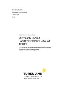Tämä opinnäytetyö tutkii lastenkodin ohjaajien osaamistarpeita ja niiden puutteita, kartoittamalla ohjaajien omia kokemuksia työn tekemisestä. Tutkimuksen teoreettinen viitekehys kertoo suomalaisen lastensuojelun sijaishuollon nykytilanteesta ja kuvailee lastenkotia työympäristönä. Se kuvaa myös ilmiöitä, jotka vaikuttavat työn tekemiseen ja millaisia työtehtäviä ohjaajilla on. Teoreettinen viitekehys on rakennettu niin, että konkreettisen lastenkodin ohjaajan työn kuvaus pohjustetaan yleisellä tiedolla siitä, mitä lastensuojelu Suomessa on ja miten sitä toteutetaan.