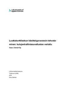 (2025)Opinnäytetyö tehtiin toimeksiantona yritykselle Zoined Oy. Työn tavoitteena oli selvittää, miten toimeksiantajan luottokorttilaskun käsittelyprosessia voitaisiin tehostaa ja millaisia kulujenhallintasovelluksia markkinoilla ... -