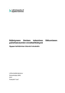 (2025)Opinnäytetyön aiheena oli ikääntyneen ihmisen tukeminen liikkumiseen painehaavaumien ennaltaehkäisynä. Työ toteutettiin toiminnallisena opinnäytetyönä yhteistyössä Attendon hoivakodin kanssa. Opinnäytetyön tavoitteena oli ... -