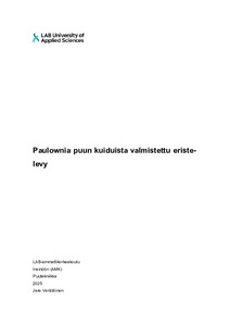 (2025)Tämän opinnäytetyön tavoitteena oli tutkia paulownia puun kuiduista märkämenetelmällä valmistettujen eristelevyjen soveltuvuutta teolliseen valmistukseen ja rakennusalan käyttöön. Tutkimuksessa valmistettiin useita levyjä ... -