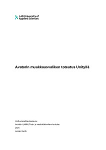 Avatarin muokkausvalikon toteutus Unityllä
