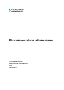 (2025)Tutkimuksessa otetiin selvää, miten mikromaksut vaikuttivat pelikokemukseen. Tavoitteena oli tunnistaa, millaisilla tavoilla pelaaja päätyy hyödyntämään mikromaksuilla ostettavia tuotteita ja mitä seurauksia niillä on. ... -