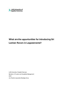 (2025)The thesis takes into consideration opportunities for exporting Sri Lankan flavors to Lappeenranta, Finland. The research will determine the impact of preferences and cultural diversity of the customers, their awareness ... -