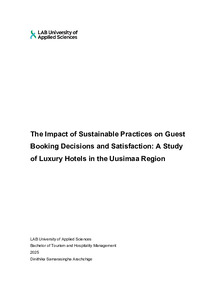 The impact of sustainable practices on guest booking decisions and satisfaction : a study of luxury hotels in the Uusimaa region