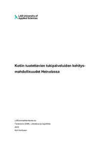 (2025)Suomen väestön ikääntyminen lisää kotiin tuotettavien tukipalveluiden tarvetta myös Heinolan seudulla. Opinnäytetyössä tutkittiin, miten näitä palveluita voidaan kehittää vastaamaan paremmin ikääntyneiden tarpeita. ... -