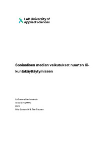 (2025)Opinnäytetyön tavoitteena oli lisätä tietoa sosiaalisen median vaikutuksista nuorten liikunta käyttäytymiseen. Opinnäytetyön tutkimuskysymyksenä toimi: mikä vaikutus sosiaalisella medialla on nuorten liikuntakäyttäytymis ... -