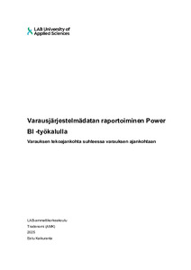 (2025)Opinnäytetyössä kehitettiin Microsoft Power BI dashboard -raportti Cintoia Oy:n varausjärjestelmädatan pohjalta yksittäiselle asiakkaalle. Tavoitteena oli muokata varausjärjestelmästä saatavaa dataa helposti ymmärrettävään ... -