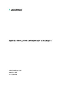 (2025)Opinnäytetyössä tutkittiin itseohjautuvuuteen vaikuttavia tekijöitä organisaatio- tiimi- ja yksilötasolla. Tutkimus toteutettiin kvalitatiivisena tapaustutkimuksena, jonka avulla selvitettiin tutkimuksen kohteena olevan ... -