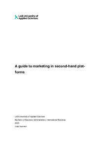 (2025)The thesis work studied the marketing actions sellers can take on second-hand platforms. Thesis covered multiple practical methods to apply to the second-hand platforms. The platforms that were covered in the thesis were ... -