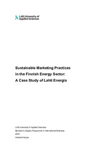 Sustainable marketing practices in the Finnish energy sector : a case study of Lahti Energia