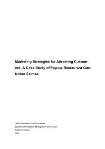 (2025)The thesis investigated ways to promote pop-up restaurants at Gastrobar Saimaa, part of LAB University of Applied Sciences, to get more people interested, involved, and happy with the experience. The goal was to find a ... -