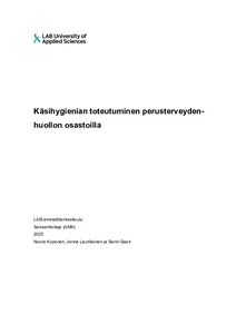 (2025)Tämän opinnäytetyön tarkoituksena oli tutkia, miten käsihygienia toteutuu hoitohenkilökunnan kokemuksien perusteella ja mitkä asiat hoitohenkilökunta kokee estävän hyvän käsihygienian toteutumista perusterveydenhuollon ... -