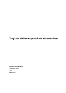 (2025)Opinnäytetyössä kehitettiin teollisuudessa toimivan konserniyrityksen sisäistä raportointia. Työn tavoitteena oli tehostaa ja selkeyttää yrityksen viikoittaista raportointiprosessia. Toimeksianto käynnistyi raportoinnin ... -