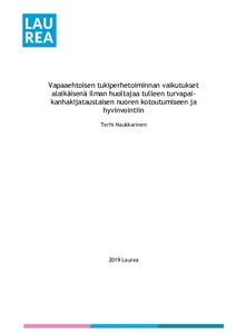 Opinnäytetyö liittyy Yhteiset Lapsemme ry:n Yhdessä Matkalla -hankkeeseen (2017-2020 STEA), jossa alaikäisenä ilman huoltajaa maahan tulleiden turvapaikanhakijataustaisten lasten ja nuorten kotoutumista tuetaan vapaaehtoisen tukiperhe- ja tukihenkilötoiminnan keinoin. Opinnäytetyön tavoitteena oli kartoittaa, millaisia vaikutuksia vapaaehtoisella tukiperhetoiminnalla on ollut tuettavien nuorten kotoutumiseen ja hyvinvointiin. Työn tarkoituksena on lisätä tietoa vapaaehtoisen tukiperhetoiminnan vaikutuksista, sekä nostaa esiin näkökulmia toiminnan kehittämiseksi ja arvioimiseksi. Työ on tuotettu yhteistyössä Yhteiset Lapsemme ry:n Yhdessä Matkalla -hankkeen kanssa.