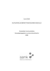 Tämän opinnäytetyön tarkoituksena oli tarkastella kilpaurheilun merkityksiä nuoren kasvulle ja kehitykselle, sillä fyysisellä, psyykkisellä ja sosiaalisella ympäristöllä on vaikutuksensa kilpaurheilua harrastavan nuoren kasvuun. Opinnäytteessä tutkittiin kilpaurheilun merkityksiä nuoren kasvulle, koska murrosiässä nuori kasvaa ja kehittyy yksilöllisesti. Lisäksi nuori ottaa ympäristöstään toimintamalleja omaan kasvuunsa. Opinnäytetyön tavoitteena oli kartoittaa kilpaurheilua harrastavien urheilijoiden ja heidän valmentajiensa näkemyksiä kilpailemisesta ja kilpaurheilun merkityksistä nuoren kasvuun ja kehitykseen. Opinnäytetyön tutkimusmenetelmänä käytettiin kvalitatiivista tutkimusotetta. Aineiston hankinnassa käytettiin kahta eri kyselylomaketta - toinen valmentajia toinen urheilijoita varten. Kyselylomakkeet lähetettiin sähköpostin välityksellä eri lajiryhmien valmentajille ja urheilijoille. Kyselyyn vastasi 15 urheilijaa ja valmentajaa. Tutkimus toteutettiin kevään ja syksyn 2008 välisenä aikana. Opinnäytetyön teoriaosuus sisältää tietoa kilpaurheilua harrastavan nuoren kasvusta ja kehittymisestä kilpailijana sekä kilpaurheilun vaikutuksista kasvuympäristönä nuoriin. Kilpailemista kasvuympäristönä osuudessa on käsitelty esikuvien vaikutusta, valmentajan vastuuta ja reilua peliä. Teoriaosuudessa tarkasteltiin myös siirtymistä kilpaurheiluharrastuksesta huippu-urheiluun ja kilpailemisen suosituksista. Tutkimuksessa saatiin tietoa kyselyyn vastanneiden valmentajien ja urheilijoiden ajatuksia kilpailemisen ja kilpaurheilun merkityksistä nuoren kasvuun. Kilpaurheilua pidettiin sekä fyysisenä, psyykkisenä että sosiaalisena harrastuksena, koska sillä on kokonaisvaltainen merkitys nuorten kasvuun ja kehitykseen urheilijana ja ihmisenä. Tuloksista on pääteltävissä, että kilpaurheiluharrastuksella on oleellinen vaikutus nuoren kasvuun ja kehitykseen.