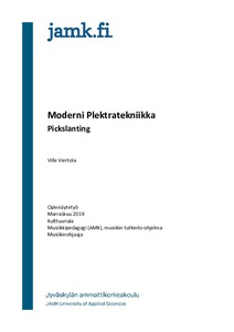 Moderni Plektratekniikka, Pickslanting opas on tarkoitettu sähkökitaran soittajille sekä sen opettajille. Sitä voidaan hyödyntää itsenäiseen opiskeluun tai opettamiseen. Oppaan itsenäiseen opiskeluun vaaditaan aiempaa osaamista sähkökitaran soitosta. Tarkoituksena on laajentaa aiempaa ymmärrystä sekä käsityksiä plektratekniikasta. Materiaalia voidaan soveltaa myös muille instrumenteille, joiden soitossa käytetään plektraa. Oppaan harjoitukset ovat sähkökitaralle, mutta teoreettinen pohja käy myös muiden samankaltaisten instrumenttien plektratekniikoiden tarkasteluun.