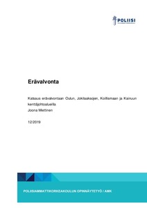 Tämä opinnäytetyö käsittelee erävalvontaa ja siihen liittyviä säännöksiä. Opinnäytetyössä käydään läpi myös metsästykseen, riistanhoitoon ja kalastukseen liittyviä perusteita. Opinnäytetyö on toteutettu kvalitatiivisena tutkimuksena. Työtä varten on haastateltu valitun tutkimusalueen neljän kenttäjohtoalueen eräyhdyshenkilöä poliisista, sekä yhtä Metsähallituksen erätarkastajaa.