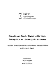 Esports and Gender Diversity, Barriers, Perceptions and Pathways for Inclusion : the role of stereotypes and cultural perceptions affecting women's participation in eSports