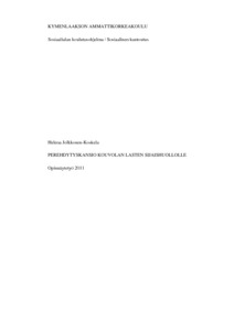 Opinnäytetyön aiheena olivat Kouvolan lasten sijaishuollon sosiaalityöntekijöiden ja sosiaaliohjaajien työnkuvat sekä heidän työtehtäviensä väliset rajapinnat. Opinnäytetyö liittyy Kouvolan lasten sijaishuollolle tehtyyn perehdytyskansioon, joka tehtiin heidän työnsä tueksi. Perehdytyskansion yhdeksi osa-alueeksi muodostui sosiaalityön-tekijöiden ja -ohjaajien työ. Tutkimustyön tavoitteena oli antaa lasten sijaishuollon työntekijöille mahdollisuus pohtia omaa työtään ja sen suhdetta työpariinsa, sosiaali-työntekijään tai -ohjaajaan nähden. Nämä työnkuvaukset ja työtehtävien rajapinnat on myös liitetty varsinaiseen perehdytyskansioon.