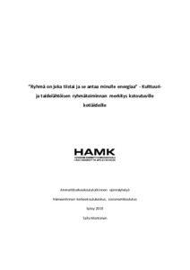 ”Ryhmä on joka tiistai ja se antaa minulle energiaa” - Kulttuuri- ja taidelähtöisen ryhmätoiminnan merkitys kotoutuville kotiäideille