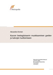 Insinöörityön tarkoituksena oli tutustua kauran kuidun, beetaglukaanin, geeliytymiseen pilkkoutumisen yhteydessä ja luoda rutiininomainen geelienvalmistusmenetelmä laboratorioon. Pilkkomisen tarkoituksena oli saada beetaglukaanin molekyylipaino laskemaan geeliytymisen helpottomiseksi.