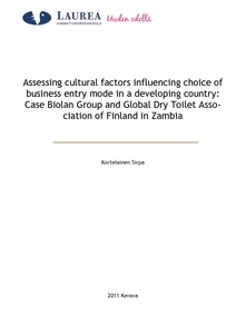 Assessing cultural factors influencing choice of business entry mode in a developing country: Case Biolan Group and Global Dry Toilet Association of Finland in Zambia