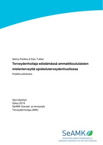 Tämän opinnäytetyön aiheena on ammattikoululaisten mielenterveyden edistäminen terveydenhoitajan näkökulmasta opiskeluterveydenhuollossa. Opiskeluterveydenhuollon toimintaa on arvioitu viime vuosina ja suurimpana kehittämistarpeena on tunnistettu mielenterveys- ja päihdehäiriöiden hoitaminen. Tämän opinnäytetyön tarkoitus on selvittää ammattikoululaisten mielenterveyden edistämistä terveydenhoitajan työssä. Tavoitteena on kehittää ammattikoululaisten mielenterveyden edistämistä opiskeluterveydenhuollossa sekä lisätä omaa ammatillista osaamista ja ymmärrystä ammattikoululaisten mielenterveyden edistämisestä.
