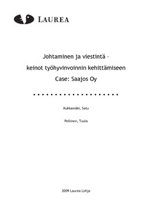 Tämän tutkimuksen tarkoituksena oli selvittää Saajos Oy:n henkilöstöä haastattelemalla, minkälaiset johtamisen ja viestinnän keinot edistävät tai heikentävät työhyvinvointia yrityksessä.