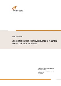 Insinöörityön tavoitteena oli määrittää Insinööritoimisto Olof Granlundin Malmilla sijaitsevan toimistorakennuksen kiertovesipumppujen energiatehokkuus, energiansäästöpotentiaali ja pumppujen uusimisen koroton takaisinmaksuaika. Koekohteen pumppujen energiatehokkuutta määriteltiin työn aikana tehtyjen mittausten avulla. Lisäksi tavoitteena oli luoda suunnitteluvaiheeseen tarkemmat määritelmät pumpun ja pumppausjärjestelmän energiatehokkuudelle. Energiatehokkuuden tarkemmat määritelmät suunnitteluvaiheessa jäivät vain ehdotus asteelle. Ehdotuksista merkittävimmäksi arvioitiin pumpun maksimivirtaamalla 60 %:n kokonaishyötysuhteen vähimmäisvaatimus.