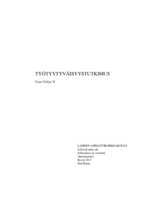 Tämä opinnäytetyö käsittelee työtyytyväisyyttä ja siihen vaikuttavia osatekijöitä. Opinnäytetyön empiriaosuus on salainen ja näin ollen opinnäytetyöstä julkaistaan vain teoriaosuus eikä case- yrityksen nimeä tai muita tietoja mainita. Tutkimustulokset ja kehitysehdotukset ovat myös salaisia. Opinnäytetyön tavoitteena on selvittää millainen on case- yrityksen henkilöstön tämän hetkinen työtyytyväisyyden tila ja mitkä tekijät vaikuttavat sen muodostumiseen. Näiden pohjalta muodostetaan kehitysehdotukset työtyytyväisyyden parantamiseksi. Työtyytyväisyyttä tarkastellaan kaikkien työntekijöiden näkökulmasta.