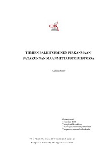 Pirkanmaa-Satakunnan maanmittaustoimisto (PISA) on Maanmittauslaitoksen alueellinen tuotantoyksikkö. Maanmittauslaitos on nettobudjetoitu maa- ja metsätalousministeriön alainen valtion virasto. Sen päätehtävänä on ylläpitää kiinteistö- ja maastotietojärjestelmiä. Tämän opinnäytetyön tarkoituksena on löytää menetelmiä tiimien palkitsemiseksi Pirkanmaan-Satakunnan maanmittaustoimistossa. Menetelmien tulee olla sovellet-tavissa myös muissa maanmittaustoimistoissa.