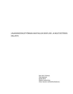 Insinöörityön tavoitteena oli parantaa tilaajan osaamista linjasaneeraustyömaan aikataulun sekä lisä- ja muutostöiden hallinnassa. Työssä pyrittiin etsimään eri keinot, joiden avulla voidaan välttää linjasaneeraustyömaan rakentamisvaiheen aikataulun viivästyminen. Lisäksi tavoitteena oli selvittää lisä- ja muutostöiden vaikutukset rakennusurakkaan Rakennusurakan yleisten sopimusehtojen YSE1998 mukaisesti sekä muodostaa toimintamalli, miten lisä- ja muutostyöt tulisi hoitaa asianmukaisesti.