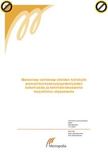 Haastatteluaineistosta muodostui kuusi alaluokkaa: ohjauskulttuuri Malawissa, odotukset ohjauksesta, ohjausta estävät tekijät, ohjausta edistävät tekijät, selviytyminen harjoittelussa ja kehittämishaasteet. Tulosten mukaan vaihto-opiskelijat eivät saaneet riittävästi ohjausta ja heidän tuli toimia itsenäisesti. Haastateltavat mainitsivat ohjausta estäviksi tekijöiksi muun muassa kulttuurin ja organisaation erilaisuuden Malawissa, resurssien ja yhteistyön puutteen sekä harjoittelun arvioinnin ja tuen puutteen. Haastateltavat kertoivat ohjausta edistäviksi tekijöiksi harjoittelupaikan toimintatapaan ja ohjaajaan liittyviä asioita, kuten henkilökunnan ystävällisyyden. Selviytymistä harjoittelussa edisti ympäristön ja olosuhteiden hyväksyminen Malawissa. Kehittämishaasteiksi haastateltavat nimesivät harjoittelupaikkojen toimintatapojen muuttamisen, yhteistyön lisäämisen muun muassa malawilaisen koulun ja harjoittelupaikkojen välillä, ohjausvastuun jakamisen ja ohjauksen lisäämisen harjoittelupaikoissa. Johtopäätöksinä todetaan, että harjoittelun ohjausta harjoittelupaikoissa Malawissa tulee lisätä. Ohjaustapoja ja ohjausmenetelmiä tulee kehittää vaihto-opiskelijoille sopivammiksi sekä lisätä järjestelmällisyyttä ohjaustoimintaan esimerkiksi nimeämällä ohjauksen vastuuhenkilö.