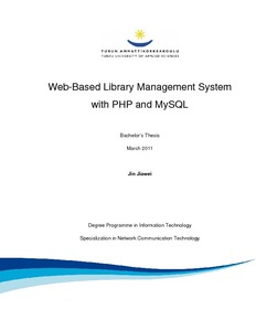The objective of this Bachelor’s thesis was to develop a web-based library management system based on PHP and MySQL in order to reduce the cost of management and make it convenient for the user. The web-based library management system includes the most popular components a common library management system has, administration, book seeker, leasing and E-mail. Besides, it has more humanistic functions such as second-hand online book shop and top 10 ranking. The website was tested on some of the most popular browsers.