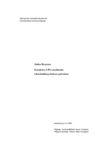 Insinöörityön tavoitteena oli luoda toimiva UPS-vuosihuoltopalvelu, joka soveltuu osaksi talotekniikkayrityksen sähköhuoltopalveluita. Oleellisena osana uuden palvelun kehittämistä oli huoltotoimenpiteiden suunnittelu sekä tarvittavien huoltoa tukevien dokumenttien luominen. Aihetta käsittelevän kirjallisuuden ohella tärkeimmäksi avuksi työssä osoittautui konsultointi laitetoimittajan myyjien ja huoltoteknikoiden kanssa.