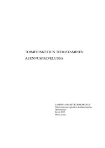 Tämän opinnäytetyön tavoitteena on tehostaa toimitusketjun toimintaa asennuspalvelussa. Teoreettinen ja empiirinen tutkimus kulkevat tutkimuksen ajan rinnakkain. Toimitusketjussa osallisina ovat laitetoimittaja, palveluntarjoaja ja sen alihankkijat sekä loppuasiakas. Toimitusketjun nykytilan kuvaus tehdään omaan havainnointiini perustuvan prosessikuvauksen sekä SWOT-analyysin avulla. Toimitusketjun laitetoimittajan ostajille ja työnjohtajille sekä palveluntarjoajan alihankkijoille tehtiin kysely, jonka tulokset omalta osaltaan kertovat toimitusketjun nykytilasta. Lisäksi tutkittavien yritysten hankintapäällikköä ja toimitusjohtajaa on haastateltu, jotta voitiin selvittää yritysten strategiset tavoitteet.