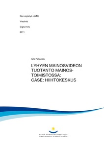 Tämä työ käy läpi yhden pienessä mainostoimistossa tiukalla aikataululla toteutetun lyhyen mainosvideon tekoprosessin, kaluston hankinnasta esituotantovaiheeseen ja lopullisen työn toimittamiseen. Työssä pohditaan myös käsiteltävän videoprojektin aikana tehtyjä ratkaisuja ja työskentelytapoja – miten vältyttäisiin toistamasta virheitä ja luotaisiin parempia menetelmiä pienten videotuotantojen tekoon.