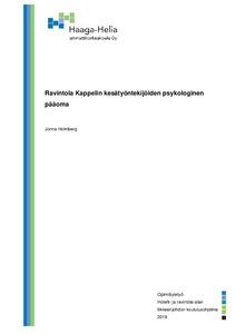 Tämän opinnäytetyön tarkoituksena oli selvittää, millainen psykologinen pääoma ravintola Kappelin kesätyöntekijöillä oli kesällä 2019. Psykologinen pääoma pohjautuu positiiviseen psykologiaan, eli tutkitaan positiivisia asioita, sekä vahvuuksia ja keskitytään kehittämään niitä. Psykologinen pääoma muodostuu neljästä ulottuvuudesta: minäpystyvyydestä, toiveikkuudesta, sitkeydestä ja optimismista. Lisäksi tutkin kesätyöntekijöiden perehdytyskokemusta psykologisen pääoman näkökulmasta ja työtyytyväisyyttä eNPS-luvun kautta. Vahva psykologinen pääoma on tutkitusti yhteydessä korkeampaan työtyytyväisyyteen.