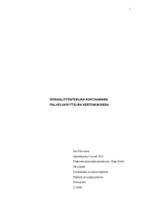Hirvonen, Jari. Sosiaalityöntekijän kohtaaminen palvelukäyttäjän kertomuksissa. Järvenpää, kevät 2011, 93s., 3 liitettä. Diakonia-ammattikorkeakoulu, Diak Etelä, Järvenpää. Sosiaalialan ylempi ammattikorkeakoulututkinto, päihteet ja syrjäytyminen - koulutusohjelma. Sosionomi (YAMK)
